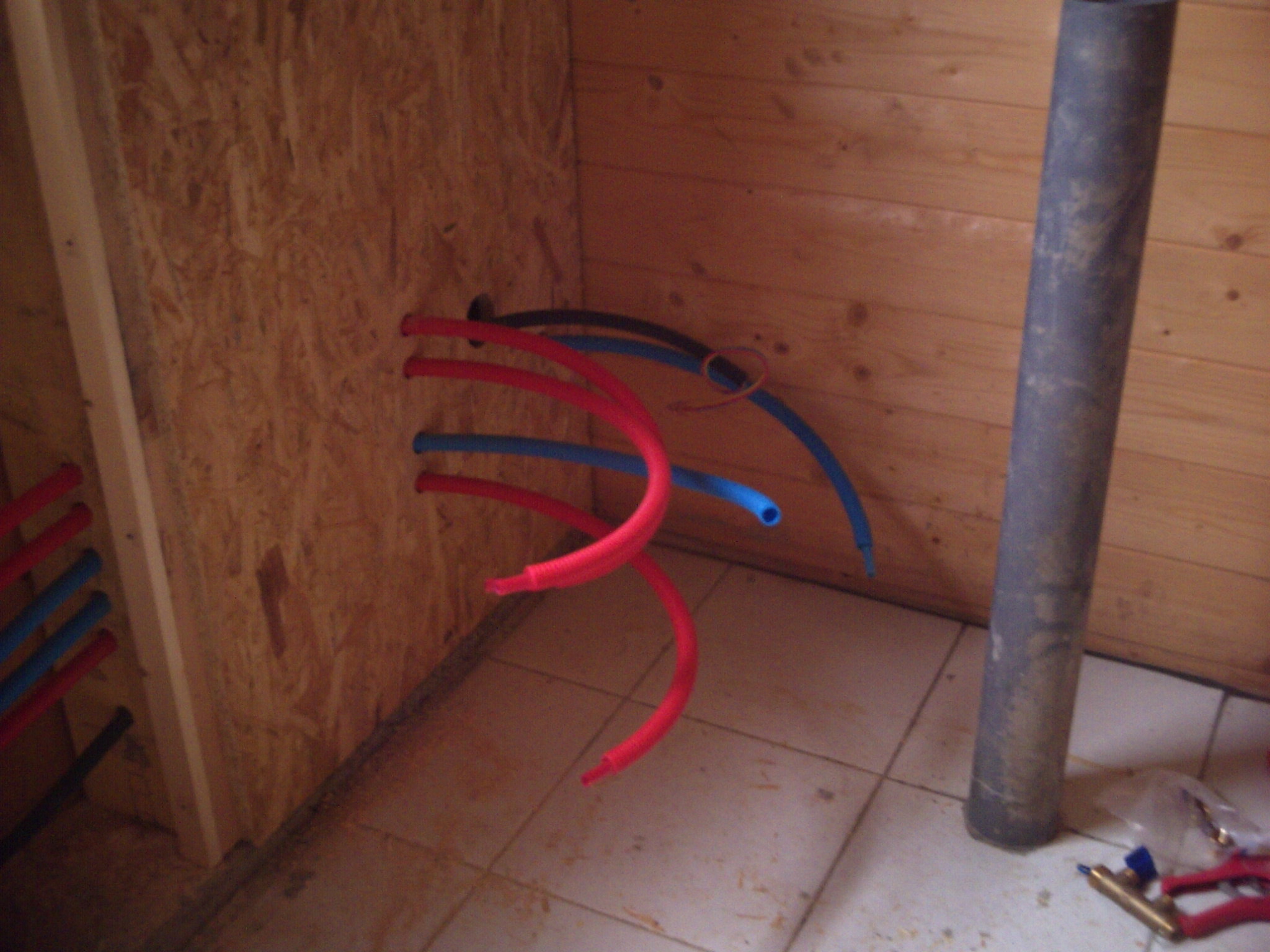 23 octobre 2009, après pose d'une cloison, sortie des différentes gaines à l'emplacement du futur chauffe-eau